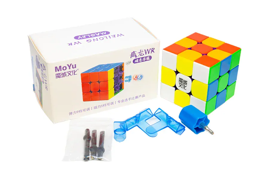 MoYu WeiLong WR M MagLev 3x3x3 je inovativní rychlostní kostka vybavená moderní technologií MagLev, která nahrazuje tradiční pružiny magnetickým odpuzováním. Tato technologie zajišťuje hladší a rychlejší otáčení, minimální tření a tichý chod. WeiLong WR M MagLev je ideální volbou pro speedcubery hledající špičkový výkon a přizpůsobitelnost.